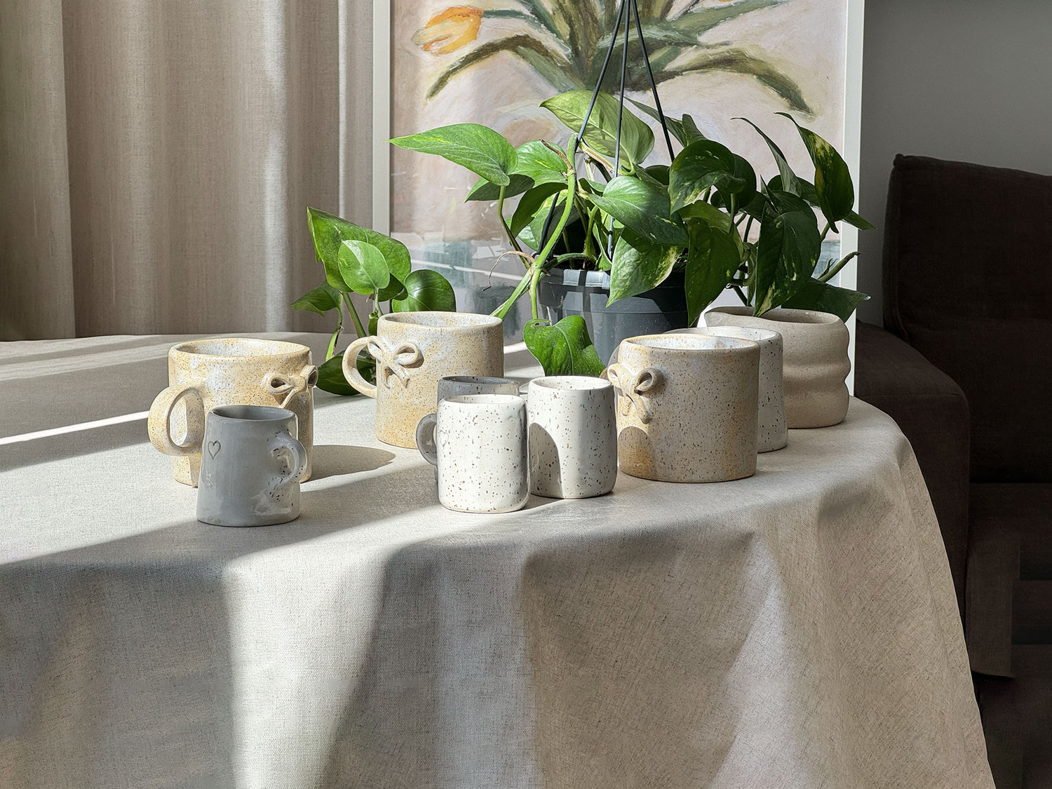 I love the process of building with my hands, creating different shapes and turning my ideas into useful creations. I will always embrace imperfection and organic shapes in my designs. This creates one of a kind stoneware pieces with character. Made to last a lifetime.